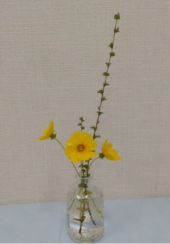 用水路沿いの散歩道を歩いているときにみつけたメリケンガヤツリです。 ちょっと失敬して、クリニックの一輪挿しに活けました。 花と葉っぱの付き方に特徴があって可愛いですね。ちょっと地味ですかね。 その後、キキョウソウ(ダンダンキキョウ) の花が枯…